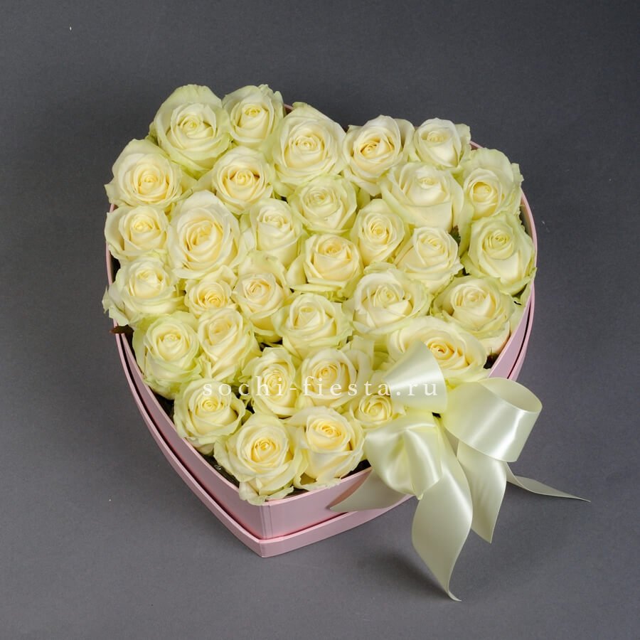 Сто один бутон кенийского пионовидного сорта собраны в масштабную композицию. Белая окантовка лепестков переходит в розовый центр. Впечатляющее присутствие в любом пространстве.
