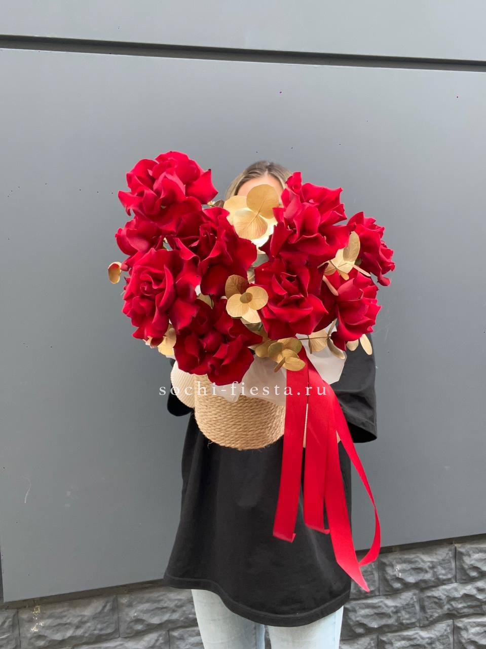 гортензия - 5 шт., лента, дизайнерская упаковка.