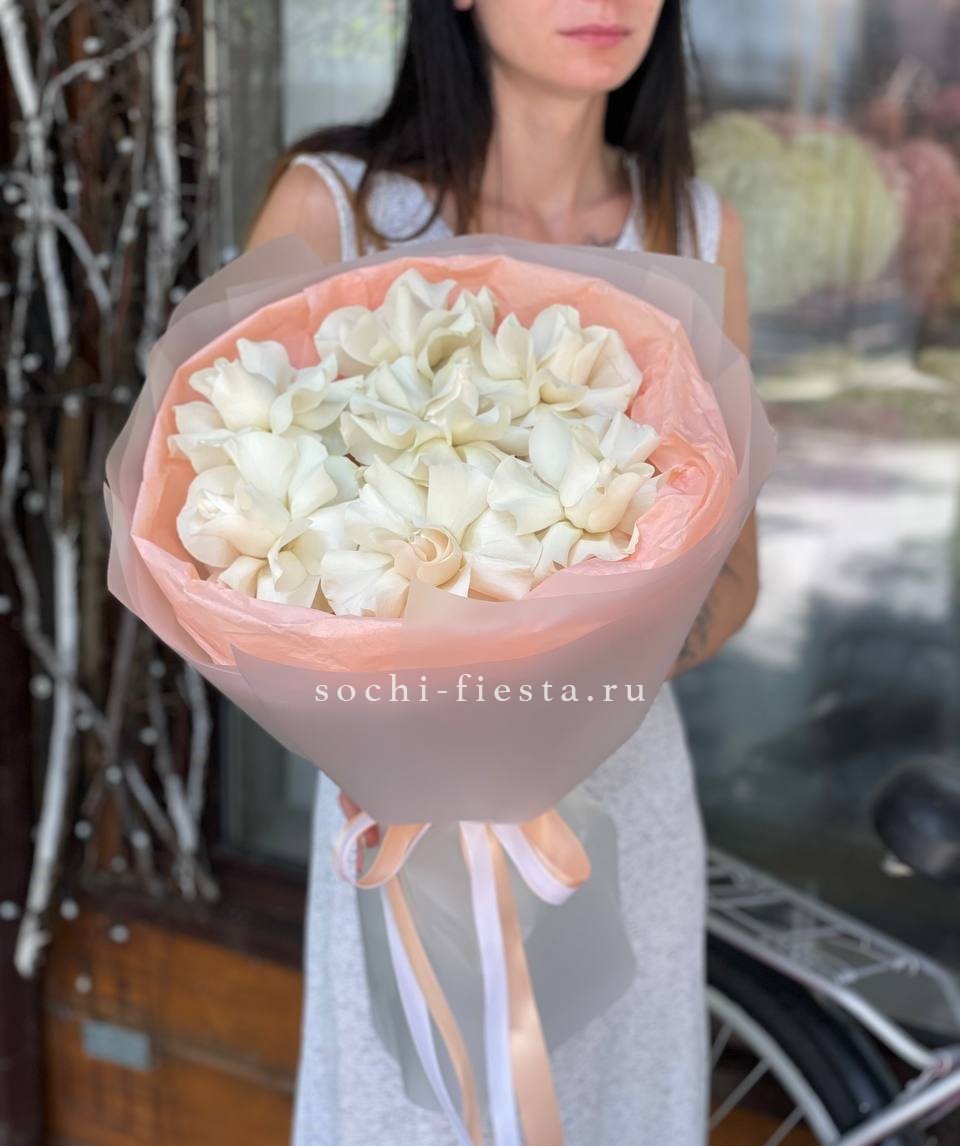 вывернутые розы, гортензия, пионовидные розы, эустома, лента, авторская упаковка.