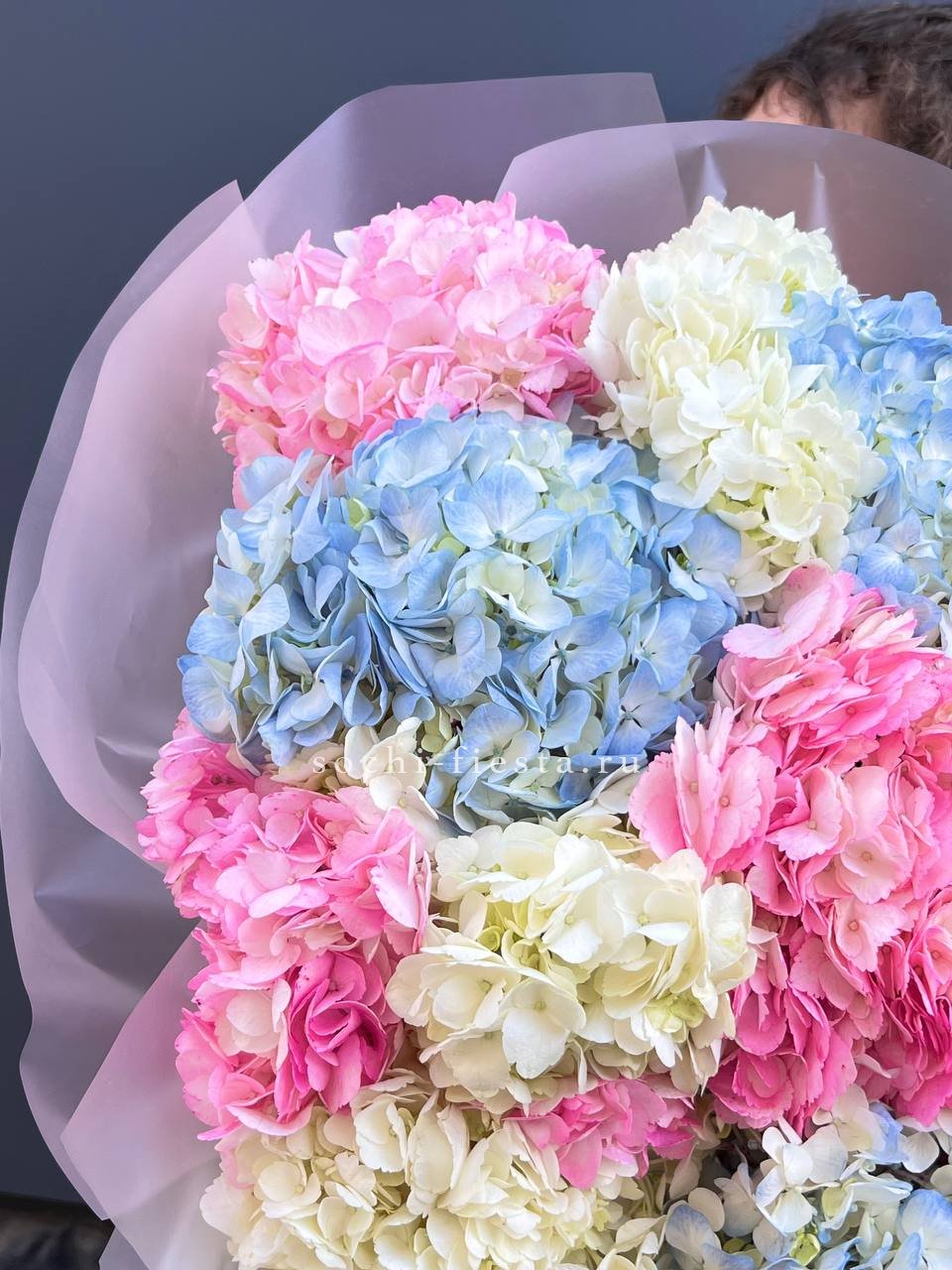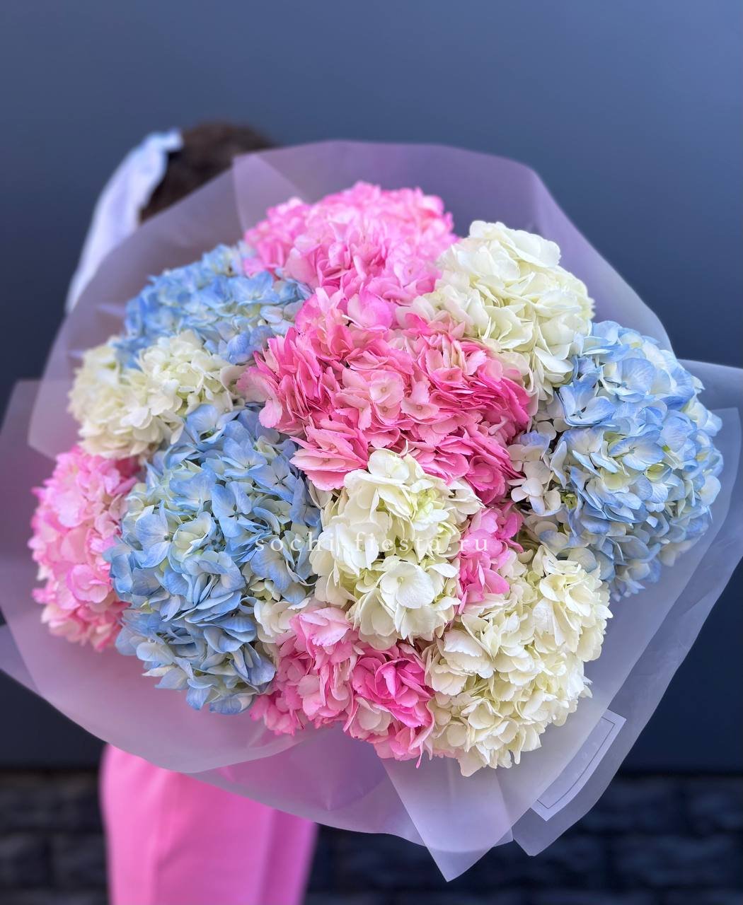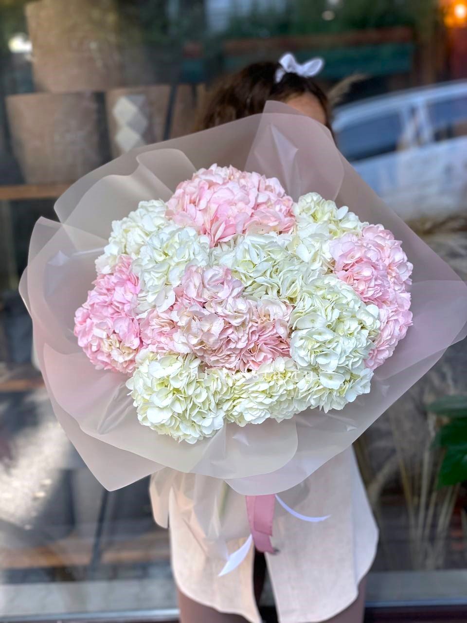 гортензия - 7 шт., лента, дизайнерская упаковка.