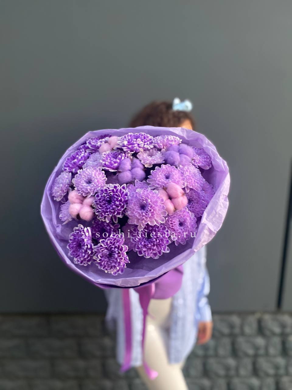 хризантема кустовая - 5шт., хлопок-5, оформление, лента.