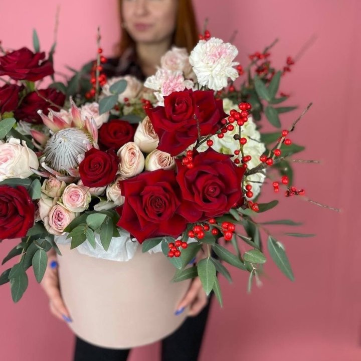 - Редкий состав — David Austin, ранункулюс, анемоны, сезонные пионы.