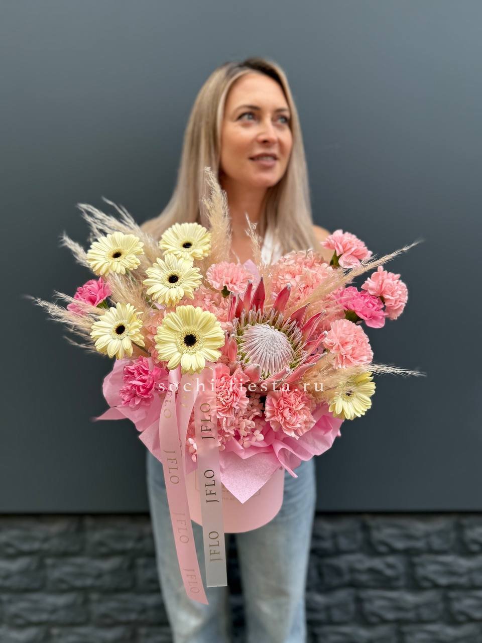 Цветочная композиция собрана с большим вкусом, взаимодействие с заказчиком с момента создания заказа и до получения цветов получателем, доставка к оговорённому времени. Всё супер!! ♥️Спасибо огромное ...