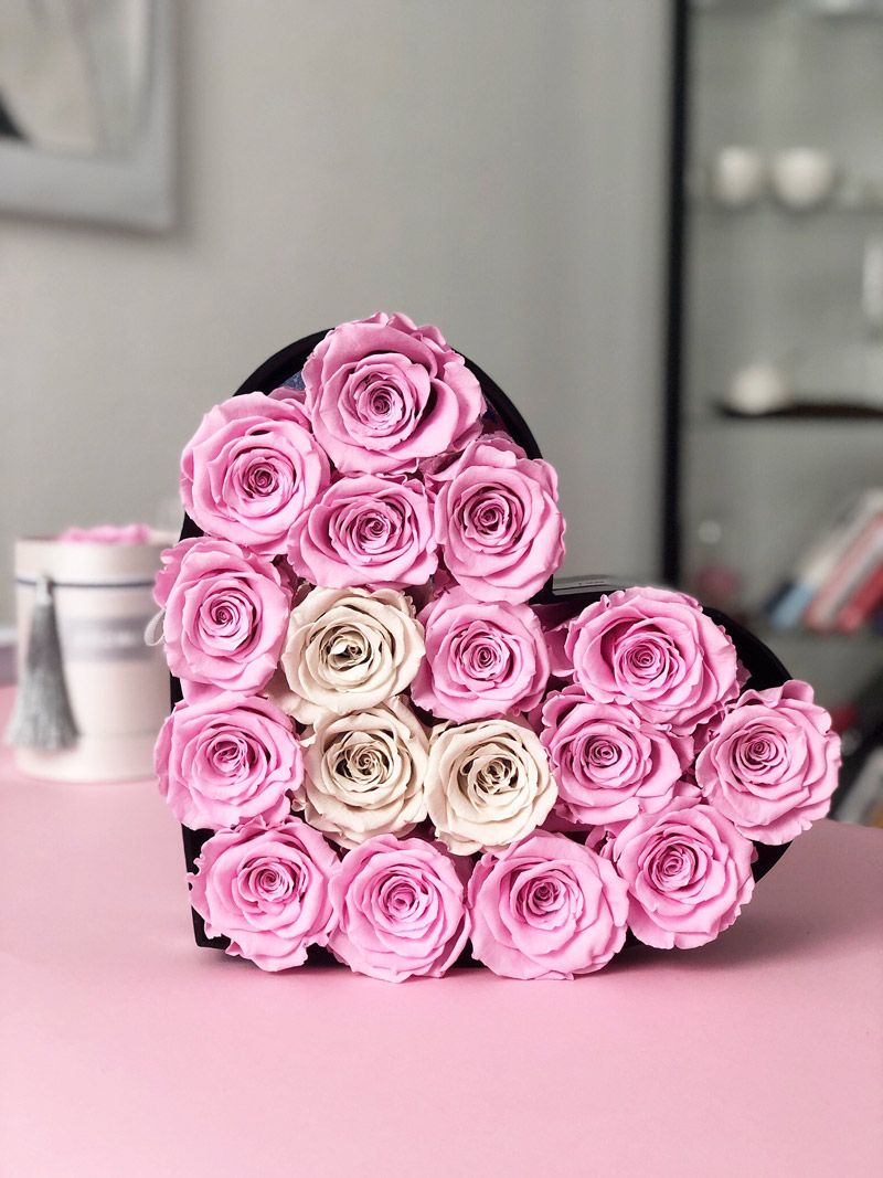 Пятнадцать розовых роз собраны в компактный бокс с мягкой бумагой. Округлая форма и аккуратная укладка делают композицию удобной для размещения на столе. Классика в современной подаче.