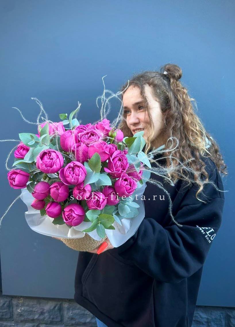 Для заказа товара "Пионовидные розы в джутовом кашпо " с доставкой в Архангельске нажмите в корзину