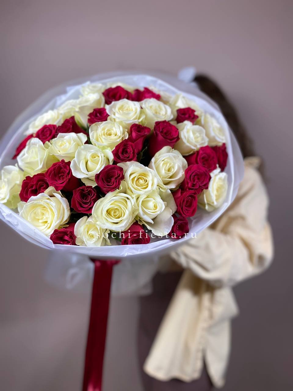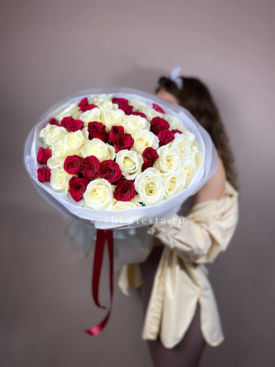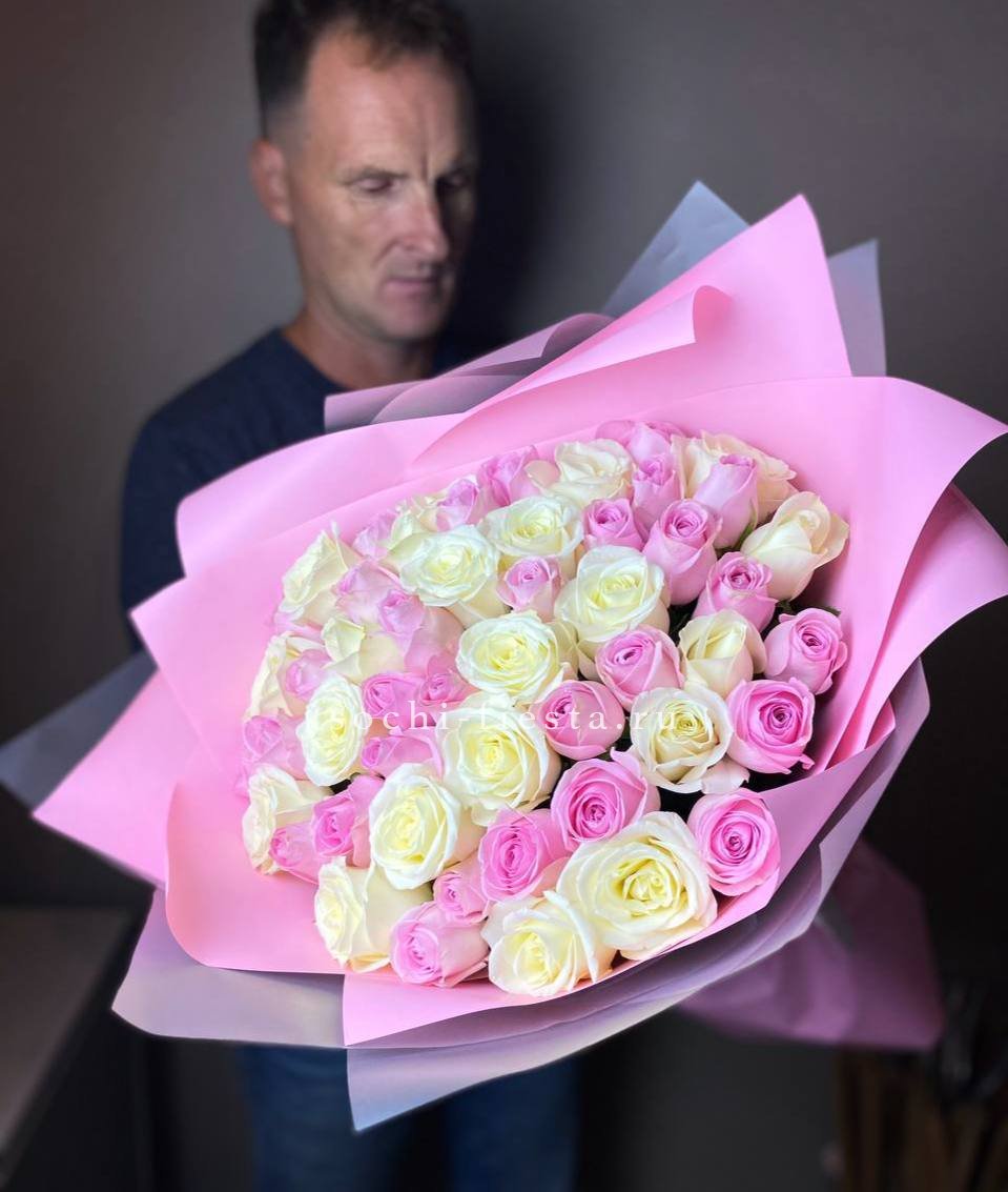 51 роза, лента, авторское оформление.