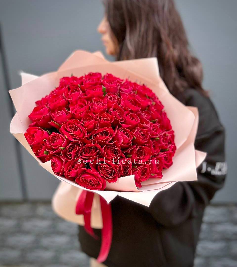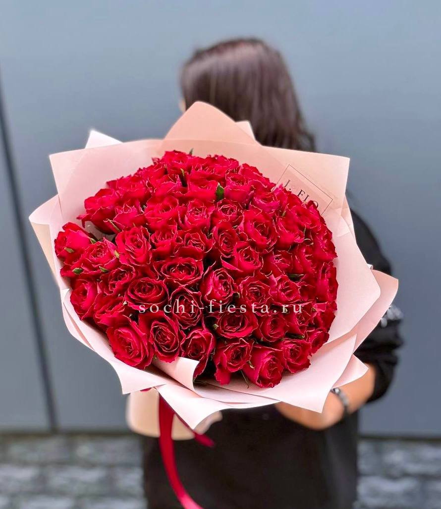 Розы Karolina раскрываются плавными переходами нежно-розовых оттенков. Сто один бутон выстраивается в плотную композицию с мягким цветовым звучанием.