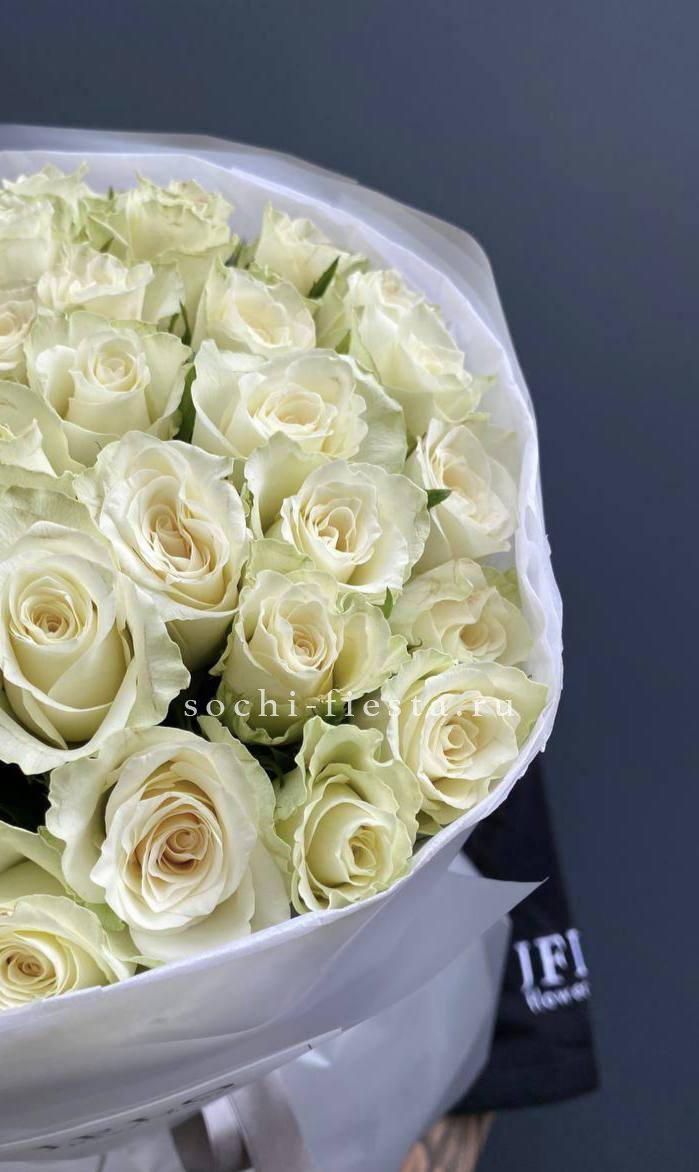 51 белая кенийская роза, лента, тишью, матовая пленка.