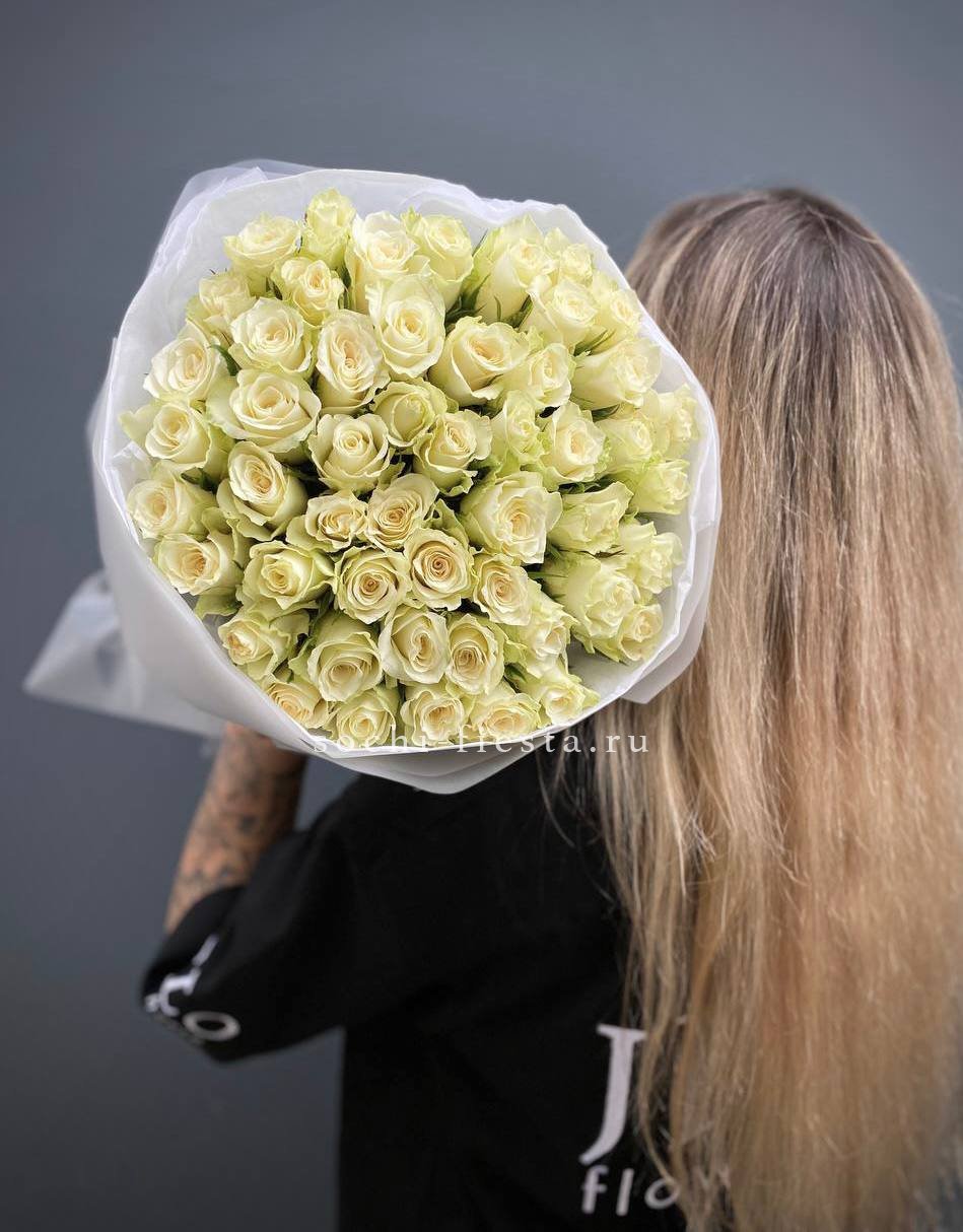 Воздушный букет из 51 белой кенийской розы