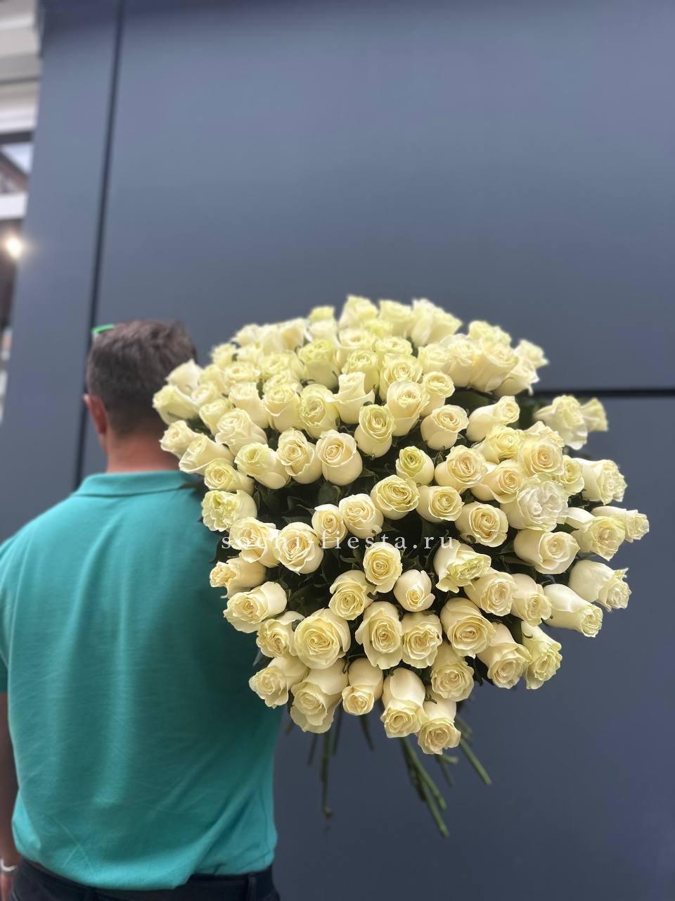 Для заказа товара "101 белая высокая импортная роза под ленту" с доставкой в Архангельске нажмите в корзину
