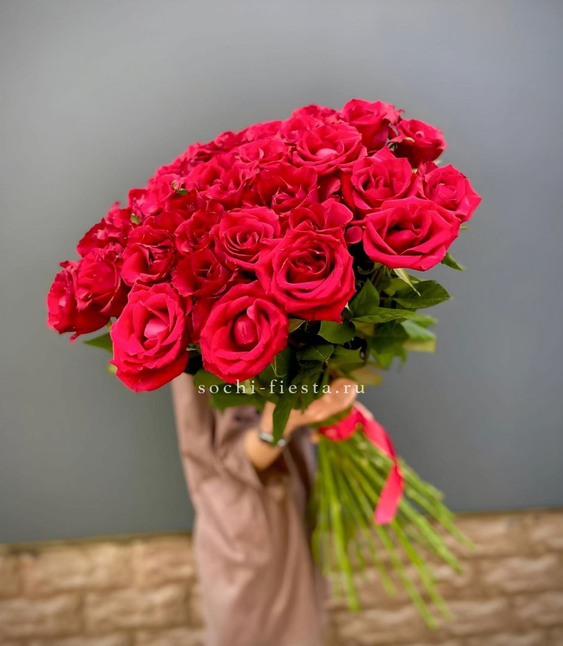 Пятьдесят один белоснежный бутон создаёт объёмное облако с мягкими переходами света и тени. Голландские розы держат форму и заполняют пространство плотной текстурой лепестков.