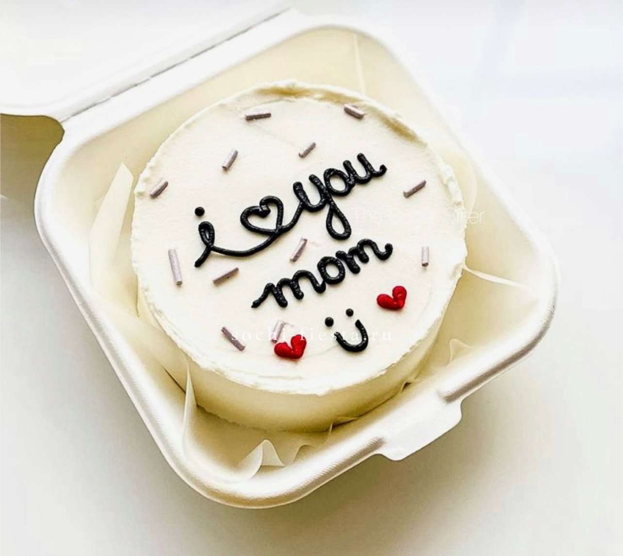 Авторский бенто-торт с романтичным посланием и яркой розово-красной палитрой. Крем формирует мягкие волны и объёмные детали декора. Компактный формат для личного момента.